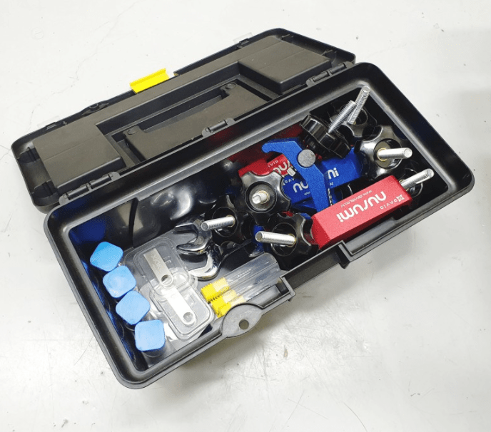 Finally, as per our service, we provide all of our clients with a toolbox that contains all of their necessary tools to operate our machinery completely free of charge. Our Nurumi Clamp, which can be bought seperately at the Amazon, spanners, USBs, cutting tools and the end mill set, all of it brought to you by yours truly.