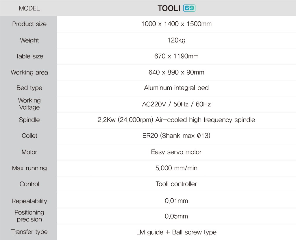 Powered with 2.2 KW, and spinning at a speed of 24,000rpm, our spindle enables fast and sophisticated work.
